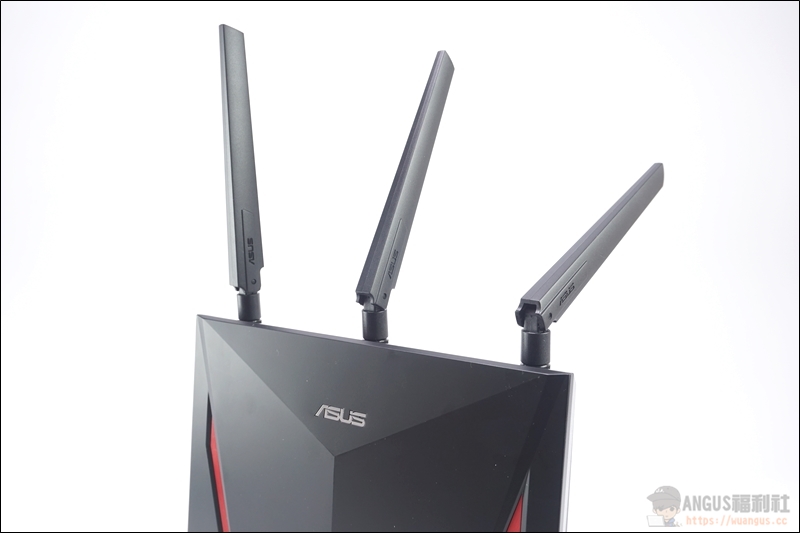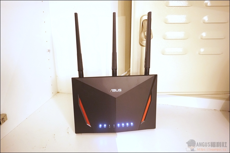 ▼ ASUS RT-AC86U 外型採用 ROG 的電競外型設計,而這款無線路由器也是主打給電競玩家使用的型號,正面的菱角設計真的相當有種專業電競的質感,外型個人覺得相當好看。