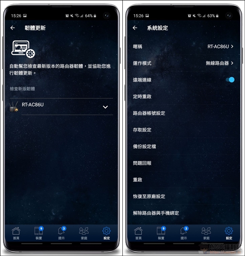 ▼ 除此之外,ASUS RT-AC86U 設備的基本設定、重新開機、遠端連線等等…也都可以透過華碩APP來操作控制。