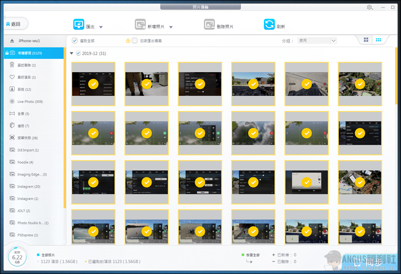 ▼ 要從 iOS 設備匯出大量 4K 影片與上萬張的照片或影片時,這時候不需要再一張張點選,只要選取全部照片/影片,點選匯出就可以藉由 Level-3全級硬體加速,匯出所有4K畫質照片,匯出速度相當極快。