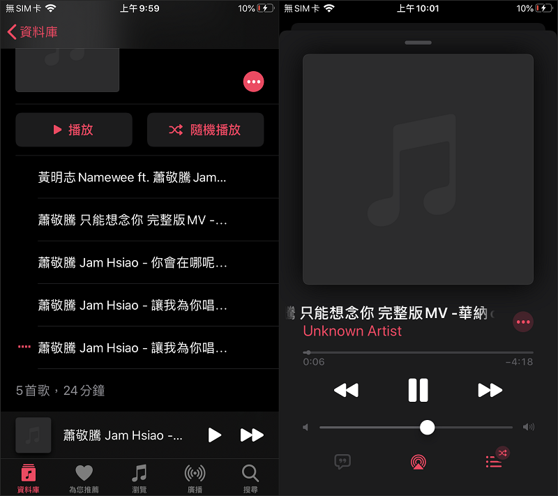 ▼ 在 iOS 設備上就可以看到音樂已經同步完成,可以直接離線撥放音樂,超級方便簡單的。