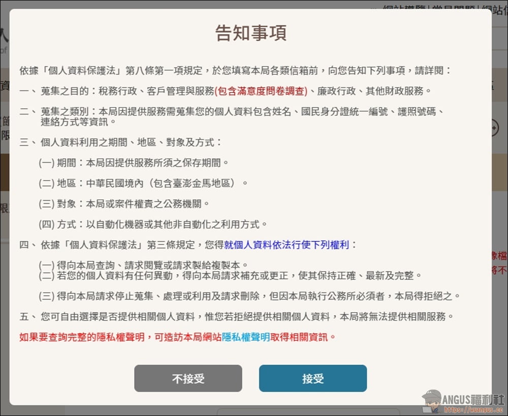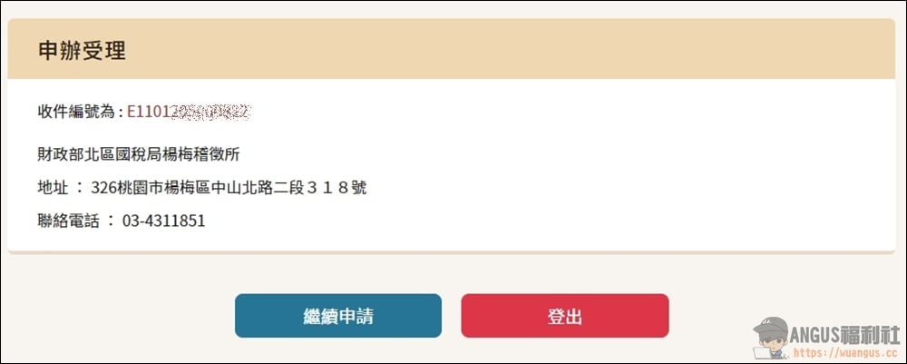 最後一個畫面就會看到「申請受理」視窗,這樣就代表真正的完成申請囉。