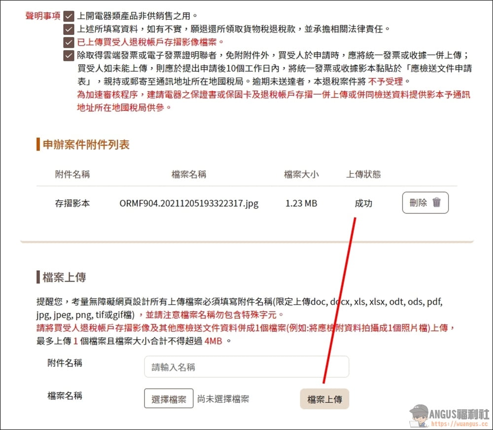 如果是在網路上購買為雲端電子發票者,可以免上傳購買證明,但如果是實體的電子發票就要拍照上傳購買證明,最後也建議大家順便把銀行存摺也拍照上傳,這樣比較不會漏掉一些證明文件。