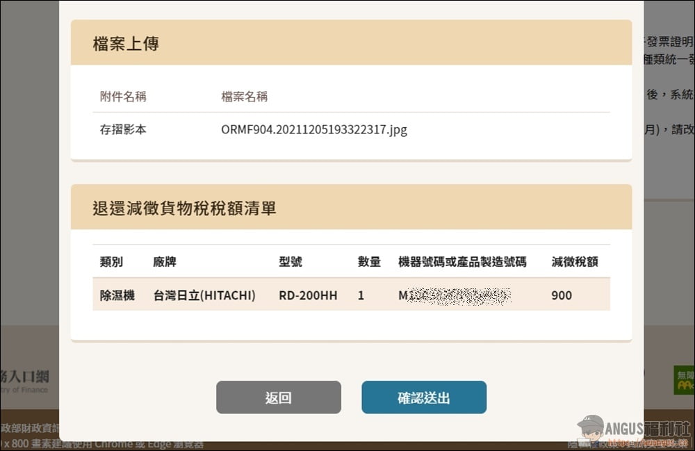 小編這次是購買除濕機,所以大家就依照自己購買的產品類別、廠牌、型號、機器序號填寫,填寫完成後按下「新增明細一筆」即可看到下方自動新增的項目。