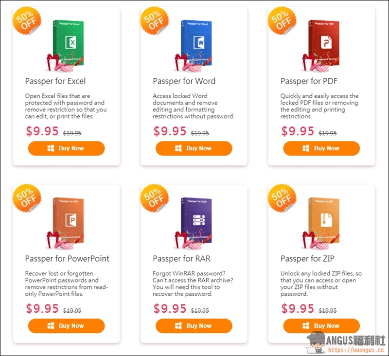 另促銷活動,共六套 Passper系列軟體只要10美元