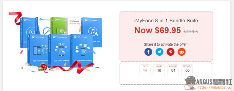 ▼ iMFone 這次真的非常有誠意,推出了「iMyFone 8-in-1 Bundle Suite」優惠活動,將原本8套軟體售價434.6美元(約台幣13,200元)優惠價現在只要69.95美元(約台幣2,153元),等於是省下台幣10,764元,這種超優惠活動真的相當難得,有想入手的用戶就快點下手吧。