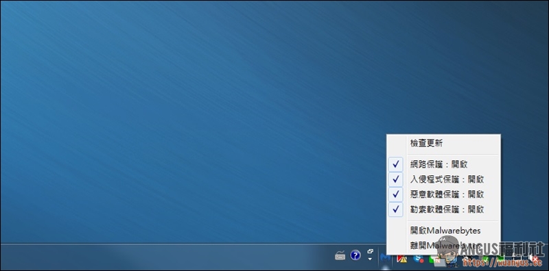 ▼ 在電腦作業系統的工具列上也可以開起/關閉網路保護、入侵程式、惡意軟體、勒索病毒保護功能。