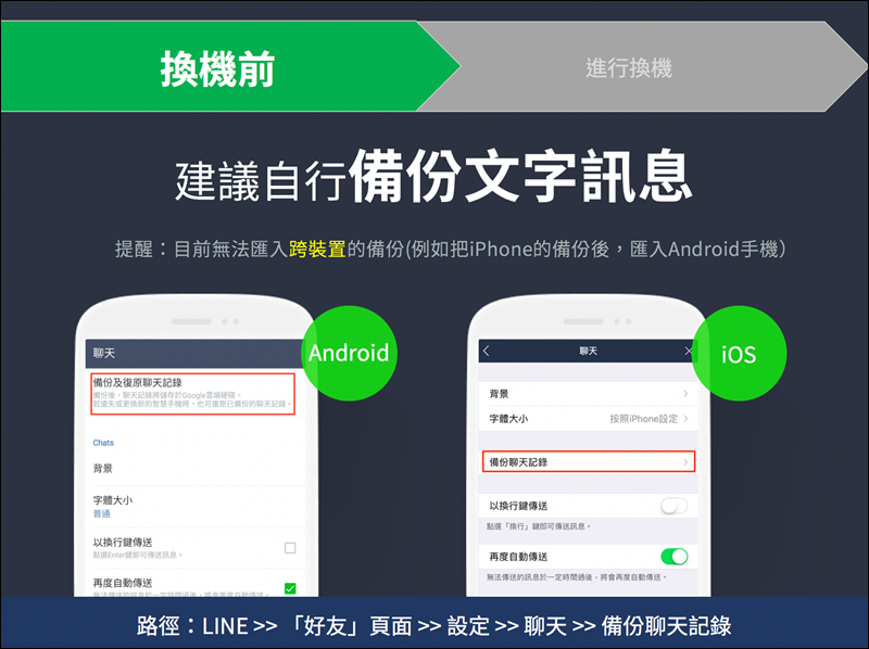 ▼ 接著開始備份LINE的聊天訊息,如果不知道該怎麼備份請看教學。(iOS備份、Android備份)
