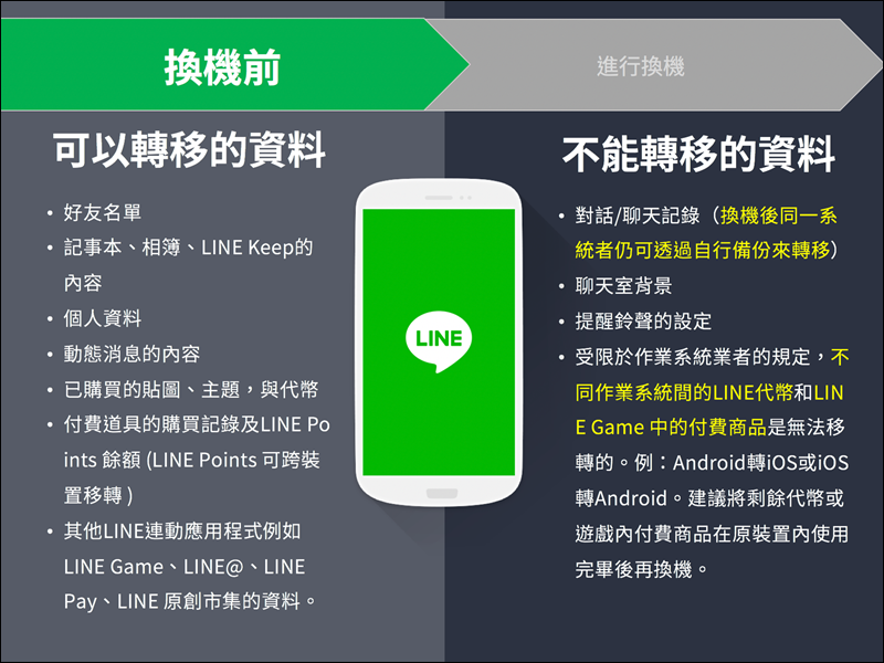 就在昨天(2/25)官方LINE推出新的換機流程,讓更換手機時可以更簡單快速,很多年輕人對於換新手機時,很多都不清楚該如何將 LINE 的帳號轉移到新手機上,更別說老人家會懂原本的換機流程,為了讓 LINE 換機流程變的簡單、直覺、友善,這次的新換機流程教學就讓 A編來帶大家跑一次詳細的教學吧!
