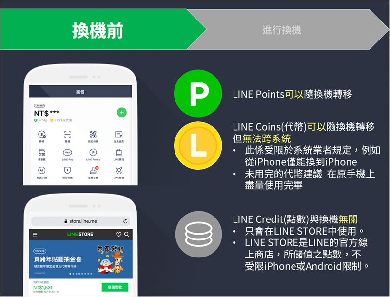 ▼ 基本上有問題的就是 iOS 與 Android 的 LINE 代幣無法跨平台轉移。
