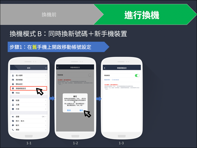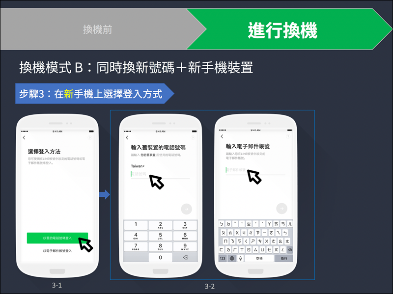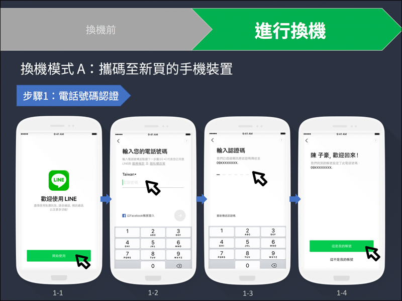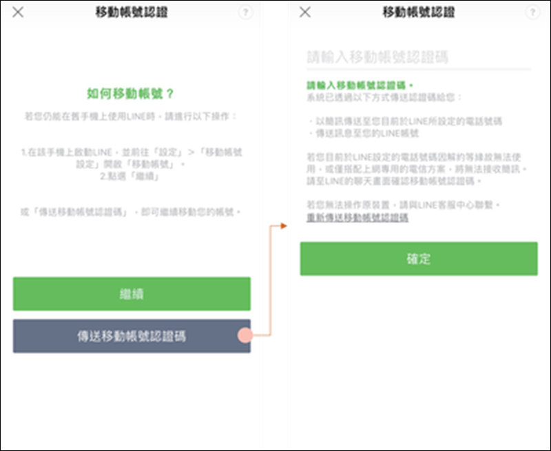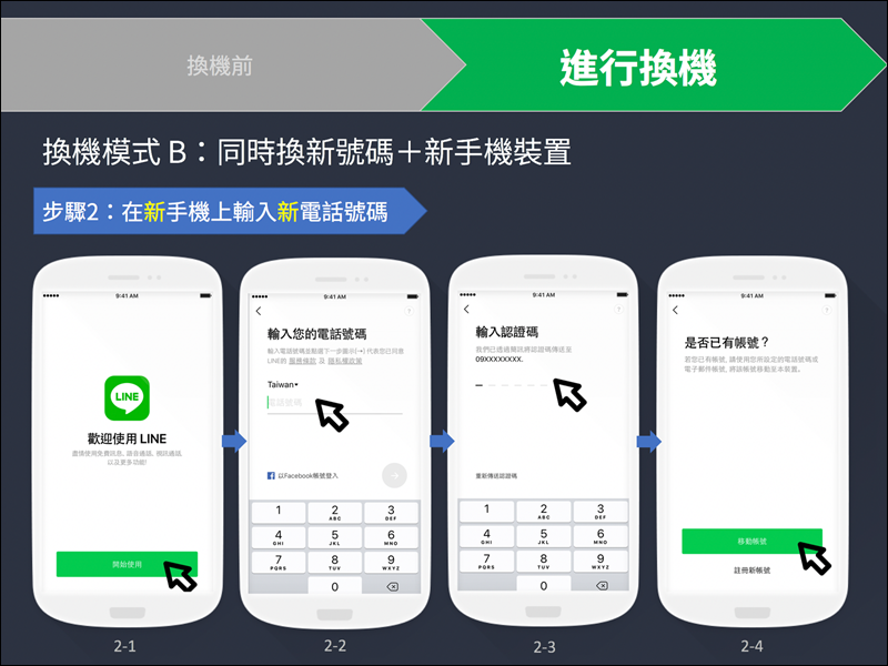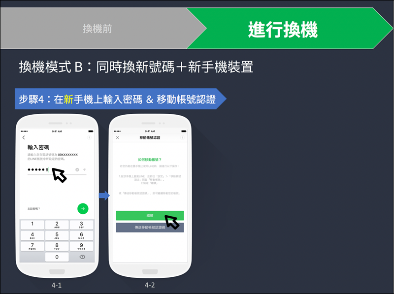 ▼ 步驟4:在新手機上輸入密碼&移動帳號認證。