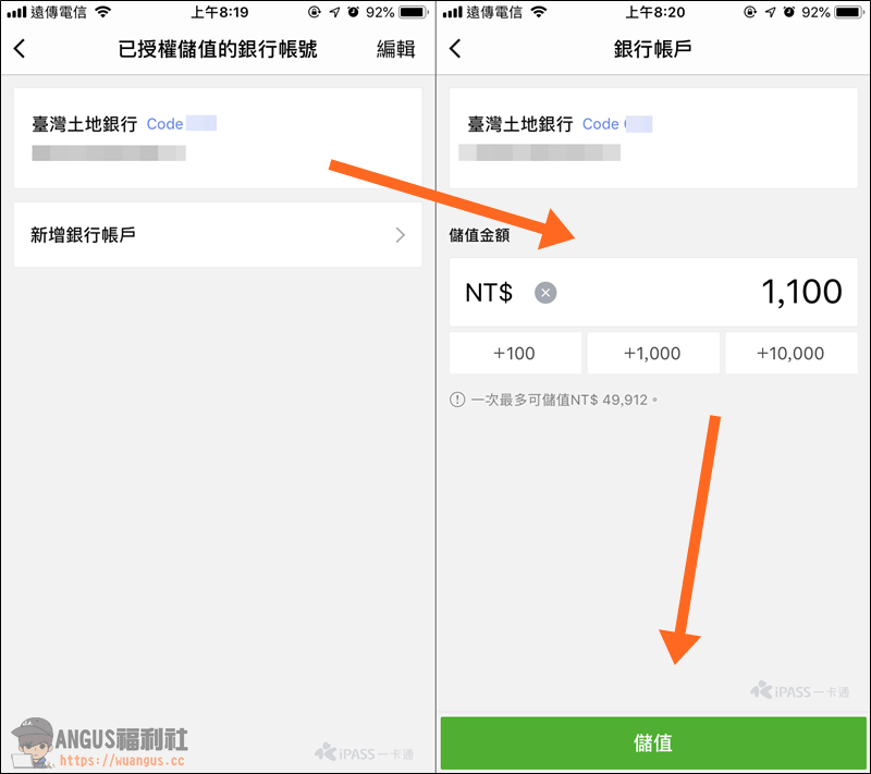 ▼ 最後就可以看到「已授權儲值的銀行帳號」選項,進入後就可以點選儲值金額「100、1000、10000」,最後按下儲值即可完成。