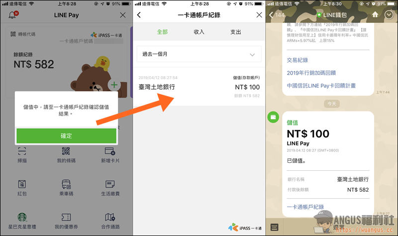 ▼ 儲值完成可到一卡通帳戶記錄查詢名細,最後也會在LINE錢包跳出提示訊息哦。
