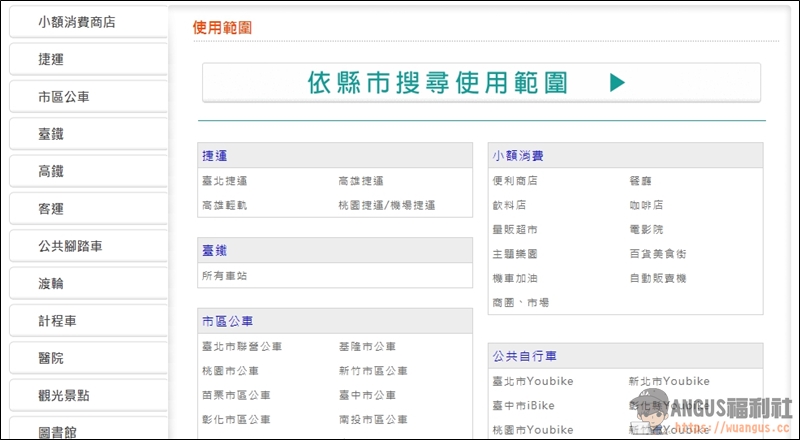 ▼ 進入一卡通票證公司網站就可以查詢可以在哪裡使用並消費,其實有非常多地方都可以使用,不管是捷運、便利商店、台鐵、高鐵、客運、公共腳踏車、主題樂園、百貨公司、觀光景點、停車場等等…,很多人都沒有習慣使用這張卡,真的是好用很多。