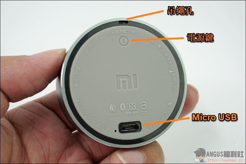 ▼ 本體後方分別為吊繩孔、電源鍵、Micro USB充電埠,操作的按鈕也就只有一個,也可以說就是開/關機的功能鍵。