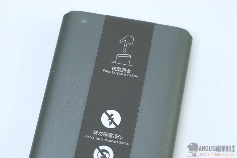 ▼ 取出商品後上方會有一張保護貼,並且簡單說明鋁合金收納盒採用按壓式開蓋設計,表面使用噴砂陽極處理,可以防止汗水根腐蝕,質感相當不錯。