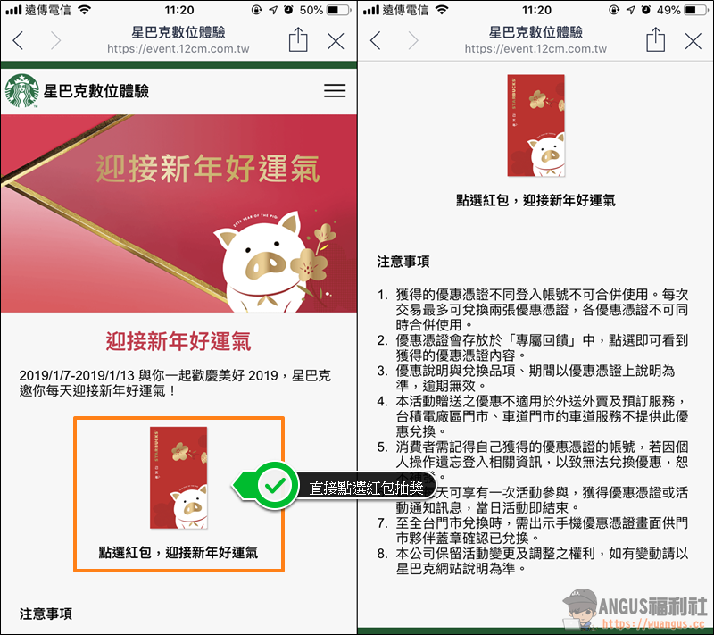 ▼ 進入活動後,會進入活動主要頁面,請直接「點選紅包,迎接新年好運氣」,就會進行即可獲得新年限定驚喜,每天每人都有一次機會。