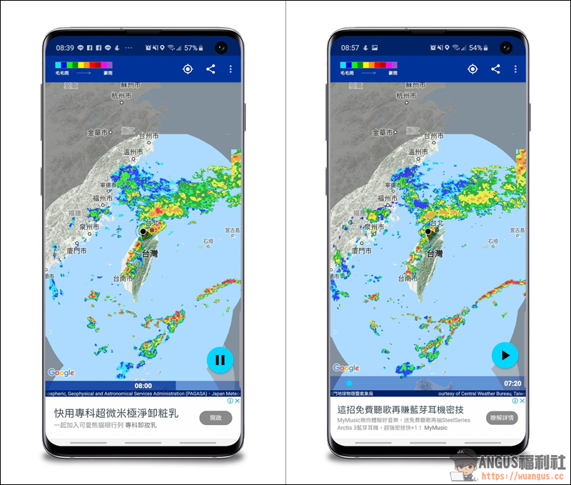 ▼ 進入主畫面視窗後,就會自動撥放近1小時的天氣降雨狀況,畫面相當清楚明瞭。