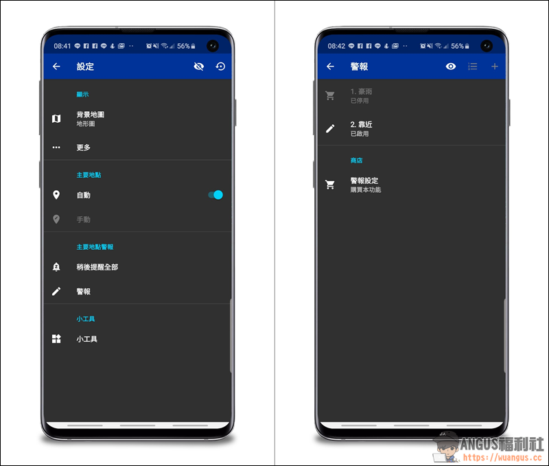【降雨警報器】這款是能夠即時通知天氣降雨預報,讓使用者能夠更清楚的知道目前自己所在天氣狀況,也可以透過衛星雲圖來查看自己所在的位置是否有雲層接近。除了可以很清楚的知道雲層動態以外,還可以調整下雨雲層接近的範圍內讓手機提出警報,可以很即時的接受到通知消息。當然這款軟體也有小工具捷徑可以放置手機桌面使用,小工具還有三種顯示樣式免費提供大家使用,除了實用性高以外美觀也不馬虎。