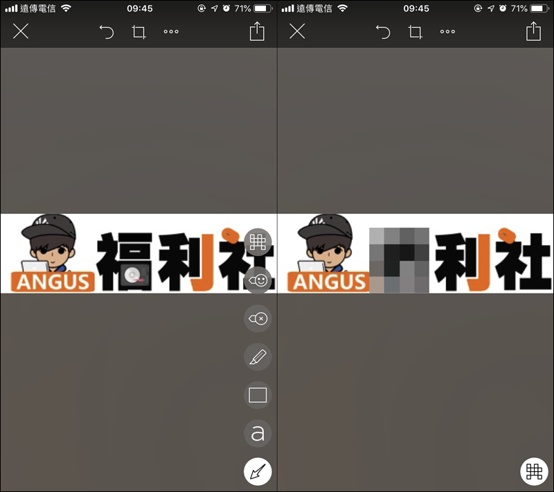 ▼ 透過功能可以自由的將圖片要隱藏的地方,打上馬賽克模糊的狀態,這是很多時候都需要用到的一個功能。