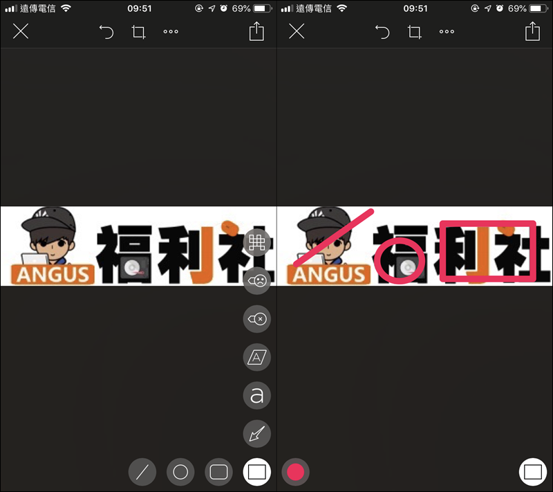▼ 圈選框的選擇可以讓使用者劃出直線、圓形、長條型的重點標示,相當好用。