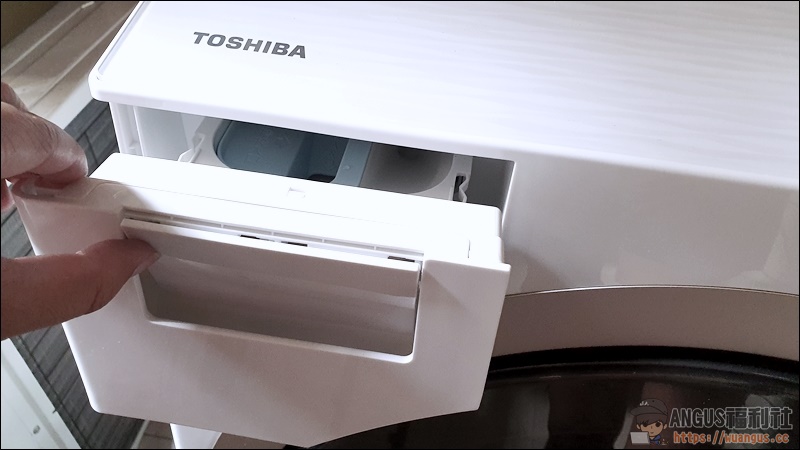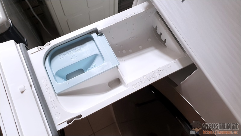 ▼ 洗滌劑盒的隱藏式設計,讓整體洗衣機的質感品質又提高不少,沒有特別打開來看的情況下,還不知道那個位置是放洗衣精、洗衣粉、漂白水、柔軟精的。