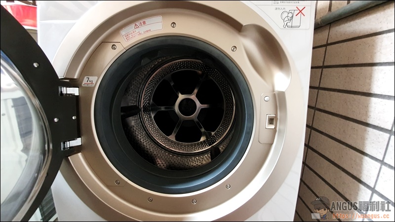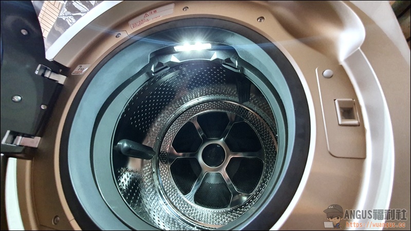 ▼ 打開滾筒式洗衣機時,可以看到產品是採用消光金圓形蓋的設計,同系列也獲得日本 Good Design設計大賞,能夠得到設計大賞感覺也不太意外,因為這樣的高質感產品真的會讓你百看不厭。