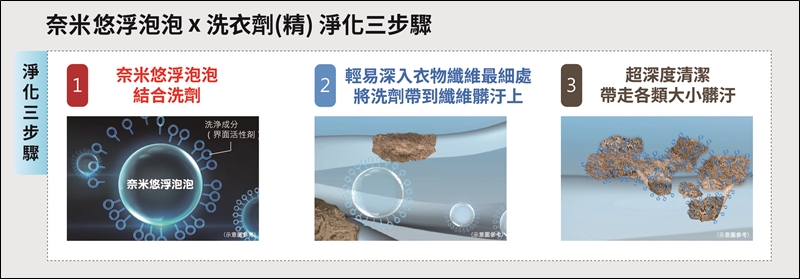 ▼ 很多人一定還搞不清楚什麼是奈米悠浮泡泡,這是東芝的獨家功能之一,簡單的說就是在洗衣服時,洗衣機會產生約 100 億個奈米泡泡,配合洗衣精、柔軟精一起去除衣物纖維上最細節的地方,達到最高的清潔效果,讓衣服更乾淨、柔軟哦。