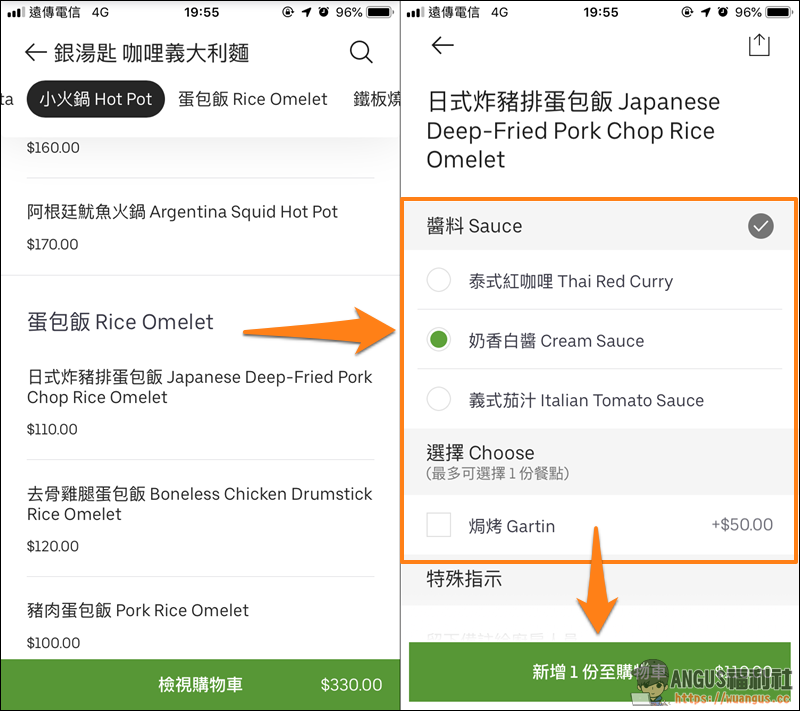 ▼ 在點餐的選項裡,除了可以選擇主要的餐點外,在餐點的醬料上也會有選項可以選擇,並不會只有單一的品項而已,點選完成後就可以直接加入「購物車」。