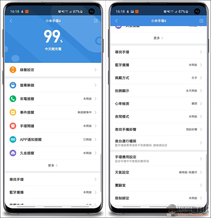▼ 手環相關的設定語提醒,也可以透過「小米運動」應用APP上來設置,非常多的功能可以調整,與過往的小米手環一樣,用戶可以依自己喜好去改變設置。