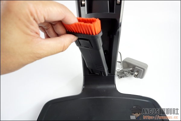 ▼ 充電座設計相當簡單,座充內還有擺放一隻清潔毛刷搭配伊萊克斯手持無線吸塵器來使用。