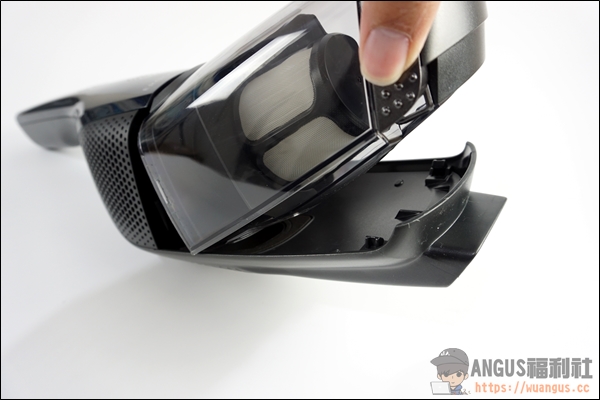 ▼ 集塵盒也只要按壓兩側的實體卡榫就可以取下來了。