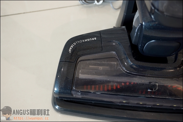 ▼ 在二合一吸頭(細縫吸頭+毛刷吸頭)的側邊有 brush roll clean 的字樣,使用者如果吸附太多毛髮在刷頭上時,只要使用腳踩就可以輕鬆把刷頭上的毛髮截斷,這是一個相當不錯的設計,使用者不用再特別拆下來清潔打結的毛髮了。